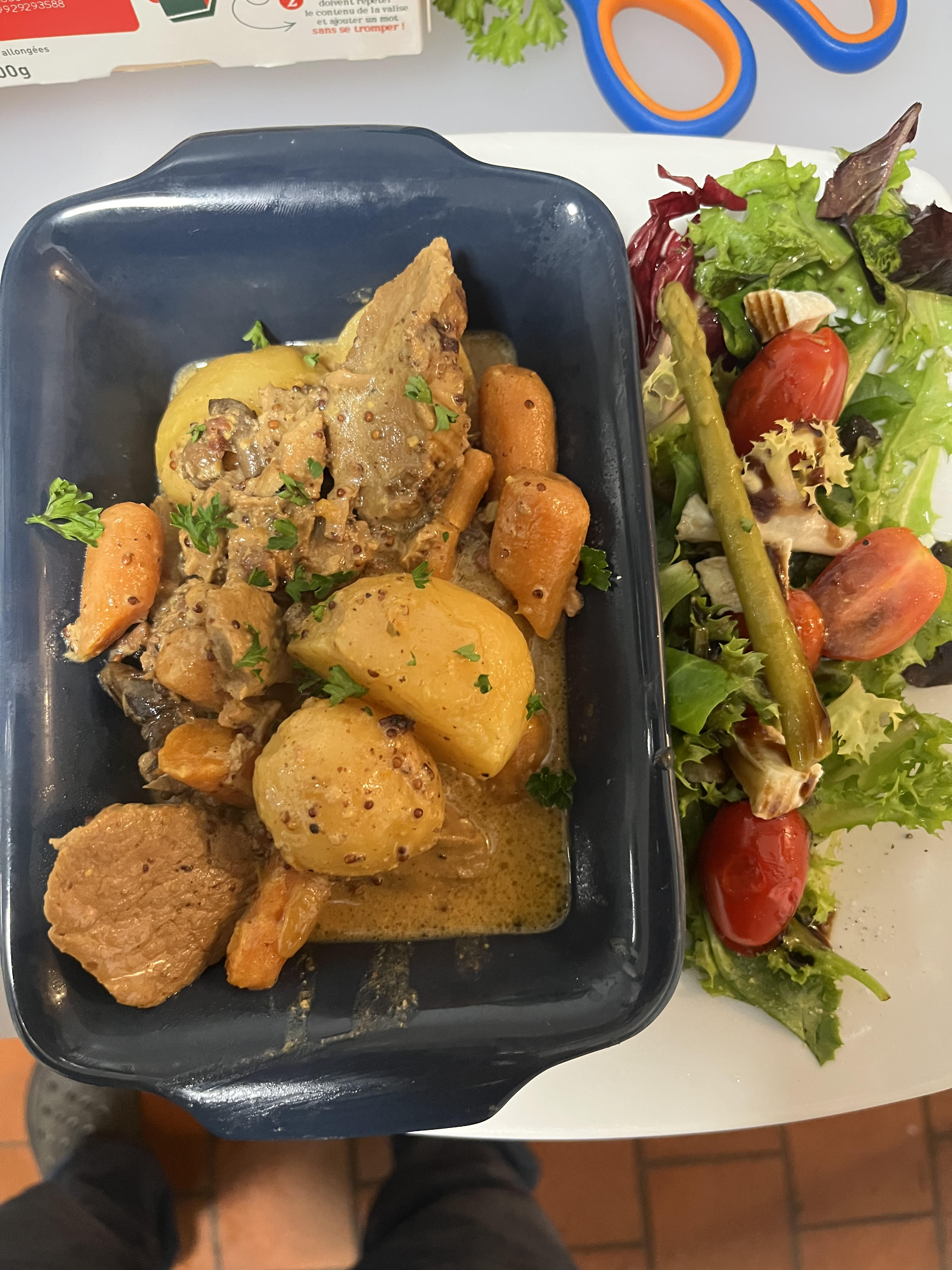 Allergens listBoeuf Bourguignon, purée de Pommes de Terre au Fromage (Crèmeux du Jura)